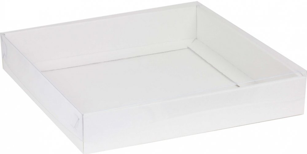 Dárková krabice s průhledným víkem 300x300x50/35 mm, bílá