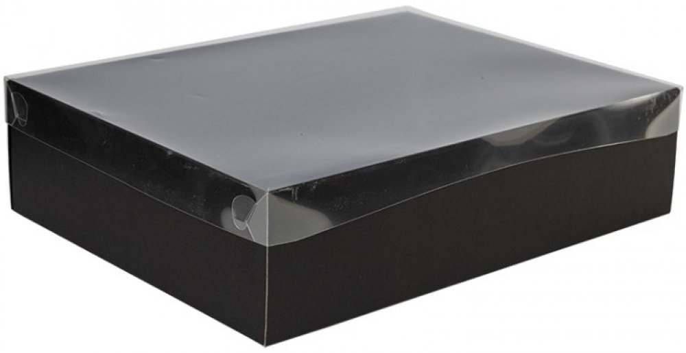 Dárková krabice s průhledným víkem 350x250x100 mm, černá