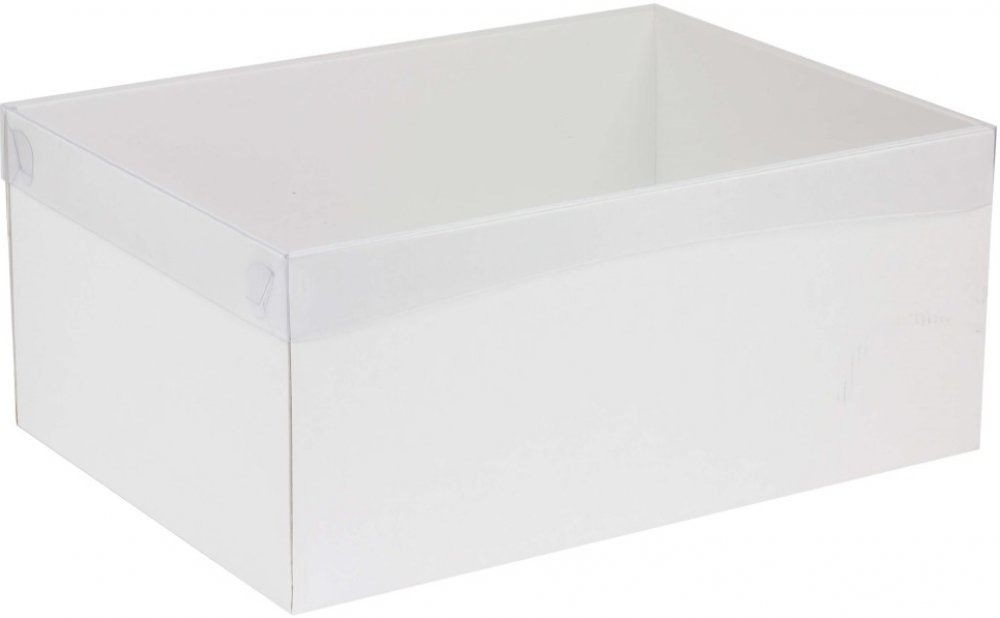 Dárková krabice s průhledným víkem 350x250x150/35 mm, bílá