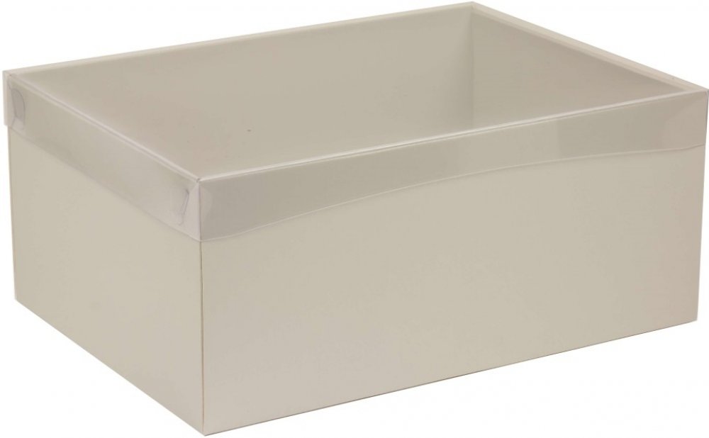 Dárková krabice s průhledným víkem 350x250x150/35 mm, šedá