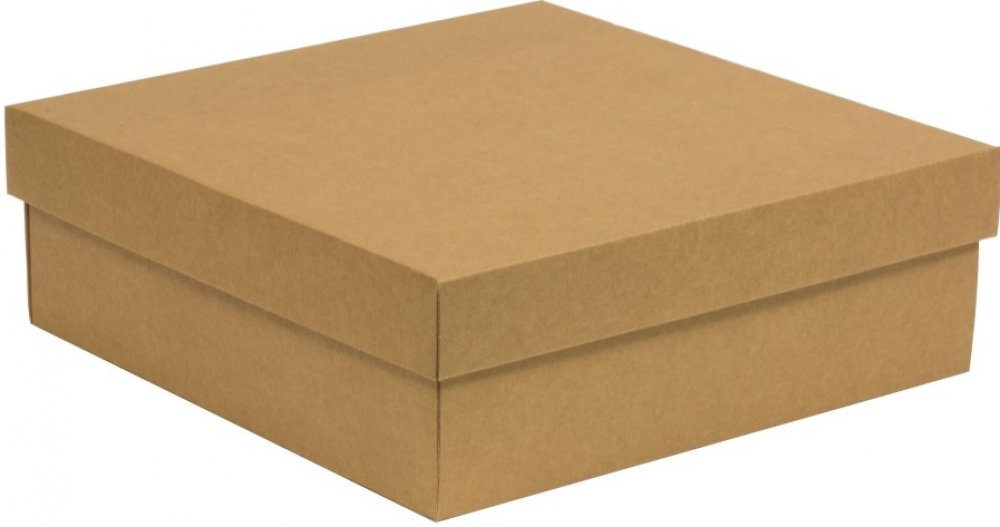 Dárková krabice s víkem 300x300x100/40 mm, hnědá - kraftová