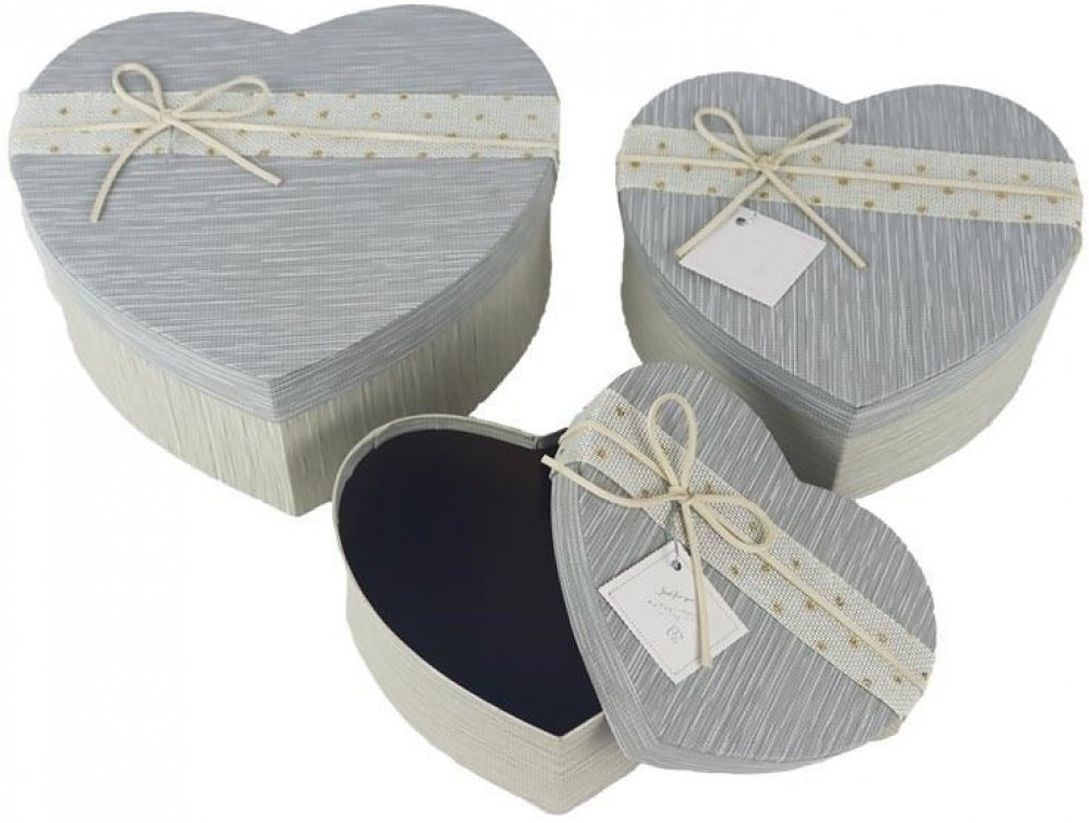 Sada dárkových krabiček ve tvaru srdce.