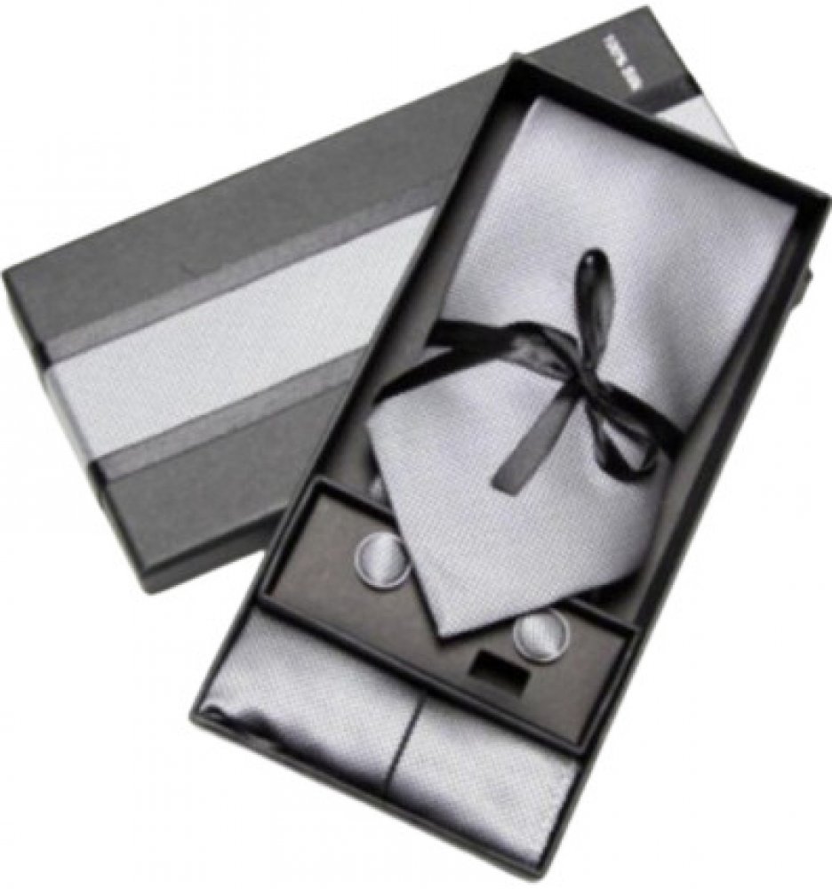 Dárková sada kravata kapesníček a manžetové knoflíky Gray