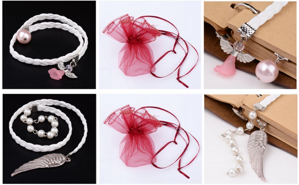 Malý dáreček od Ježíška pod stromeček, který potěší hlavně milovníky knih. Ozdobné záložky do knížek s přívěskem růžového andílka a růžové perličky nebo andělského křídla s bílými perličkovými korálky.