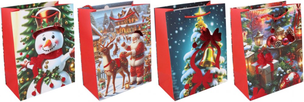 Stylová dárková taška ve velikosti L s rozměry 32 × 41,5 × 12 cm je ideální pro balení větších dárků. Nabízí vánoční motiv, pevné provedení a snadné přenášení. Dostupná ve 4 variantách motivů pro perfektní sváteční atmosféru.Usnadněte si balení vánočních dárků s elegantní dárkovou taškou ve velikosti L. Díky pevnému materiálu a praktickým uším zvládne bezpečně přenést i větší a těžší balíčky. Styl...