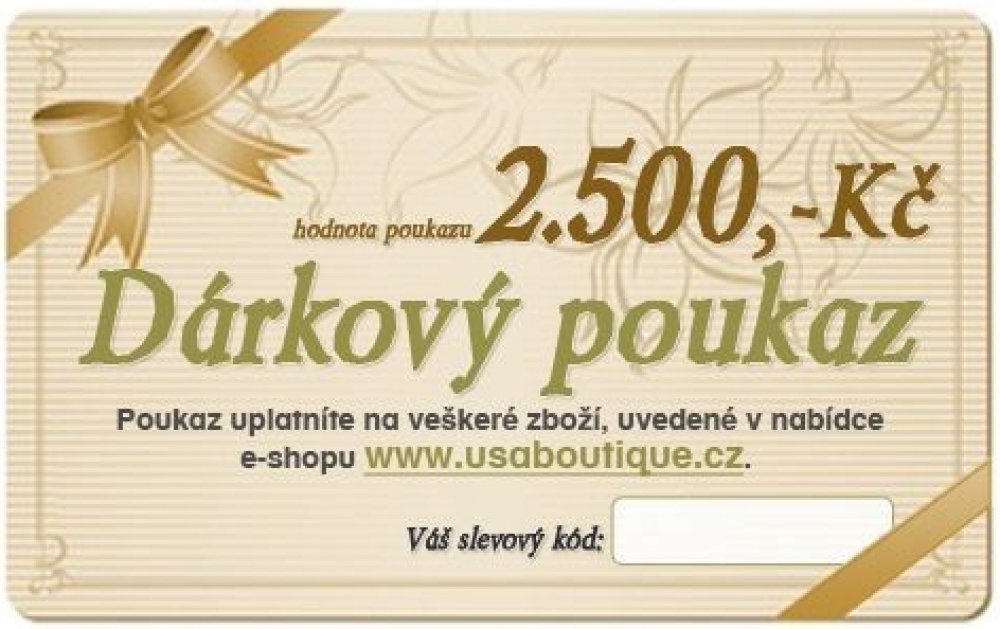 Dárková poukázka je více než jen šek, pro někoho představuje očekávaný dárek, pro druhého něco navíc nebo něco potřebného. Je to univerzální dárek, který uspokojí určitě každého a určite se nezmýlíte při výběru. Dárkovou poukázku obdržíte elektronickou poštou, takže Váš dárek budete mít okamžitě po zaplacení a nemusíte tedy čekat na doručeni poštou. Poukázku zakoupite standardním postupem, jako jiné zboží.