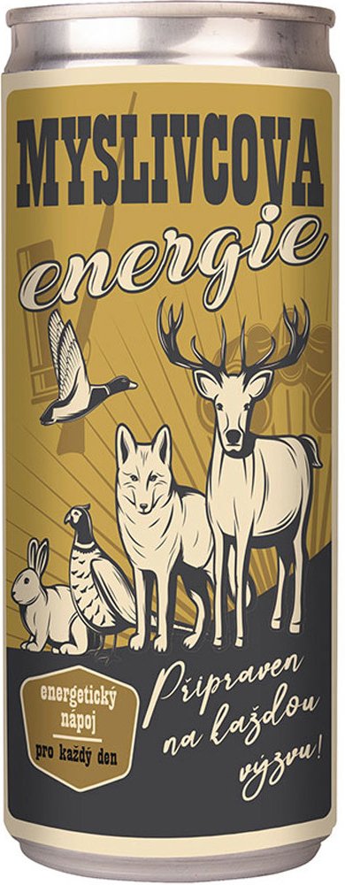Když vstáváte dřív než slunce a les ještě spí. Tohle je energie, která drží krok s lovem. Lov není jen o trpělivosti, ale taky o výdrži. O brzkých ránech, dlouhém čekání a soustředění, které nesmí polevit. Energetický nápoj pro myslivce „Energie pro tvůj lov“ je přesně ten typ povzbuzení, který se hodí mít po ruce, když den začíná dřív než většině světa. Jde o mírně perlivý nealkoholický energetický nápoj s obsahem kofeinu, taurinu a vitamínů. Kombinace, která pomůže nastartovat tělo i mysl, dodat energii a udržet pozornost – ať už jste na posedu, na pochůzce lesem nebo jen plánujete další výpravu. Chuť je svěží a příjemná, žádná přehnaná sladkost, ale poctivá dávka energie. Díky tematickému provedení je nápoj nejen praktický, ale i stylový. Skvěle funguje jako dárek pro myslivce, milovníky přírody nebo kohokoliv, kdo má rád les, klid a rána zahalená mlhou. Hodí se k narozeninám, svátku, Vánocům nebo jen tak – jako malá pozornost, která potěší i povzbudí. Objem 250 ml je ideální na rychlé doplnění energie bez zbytečného přehánění. Tenhle nápoj není o hluku a spěchu, ale o tiché síle. Tak co, je čas vyrazit na lov? Energie už čeká. Složení: pitná voda, cukr, barvivo karamel, aroma, kyseliny:kyselina citronová, taurin (4mg/ml), kofein (0,32mg/ml), konzervanty: sorban draselný, benzoan sodný, Vitamíny: kyselina pantotenová, Vitamín B6, Vitamín B2, Vitamín B12 Energetický nápoj. Sycená pitná voda ochucená - syceno CO2. Množství kofeinu obsaženého v 1 balení výrobku odpovídá množství kofeinu obsaženého v jednom šálku kávy. Nevhodný pro diabetiky. Vysoký obsah kofeinu - není vhodné pro děti a těhotné nebo kojící ženy, pro osoby citlivé na kofein. Doporučená denní dávka max 500 ml. Ukládat mimo dosah dětí. Nemíchat s alkoholickými nápoji. Podávat chlazené. Minimální trvanlivost do data na dně obalu. Skladovat při teplotě 5 až 25°C. Vyrobeno v ČR - MaxDrinks s.r.o., Trojanova 775, 278 01 Kralupy nad Vltavou 1. Balí a distribuuje: Mediabox spol.s.r.o., Na Vavřinci 358, 27401 Slaný, Česká republika. Energetická hodnota ve 100 ml nápoje: 204kJ (48kcal) – 2,43 %* bílkoviny = 0 g sacharidy 12 g (48 kcal /4,62% *), z toho cukry 12 g tuky = 0 g, z toho nasycené mastné kyseliny = 0 g sodík = 0 g (sůl =0 g) vláknina = 0 g *Referenční hodnota příjmu u průměrné dospělé osoby 8400kJ/2000kcal Obsah: Nápoj obsahuje ve 100 ml DDD (v %) kyselina pantotenová 2.2 mg 36,67 % Vitamín B6 2,2 mg 157,23 % Vitamín B2 0,7 mg 50,00 % Vitamín B12 2,2 ug 88,00 % DDD - doporučená denní dávka