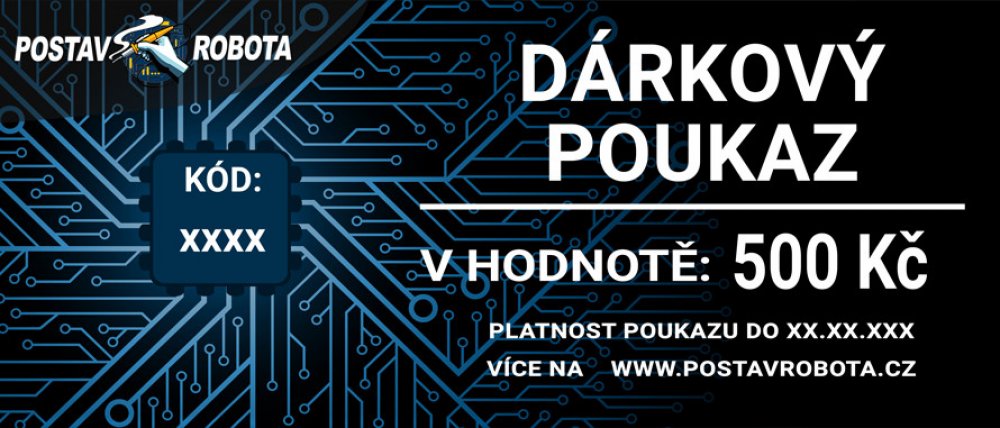 Tento dárkový poukaz je ideální pro ty z Vás, kteří víte, že Vaši blízcí mají zájem po některých elektronických součástkách z našeho e-shopu k realizaci svých projektů.Dárkový poukaz je určený k úhradě nákupu na www.postavrobota.cz. Stačí opsat kód do vyhraze...