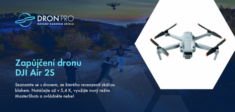 Seznamte se s dronem, ze kterého recenzenti skáčou blahem. "Dron DJI Air 2S":https://dronpro.cz/dji-air-2s je další generací populární řady Mavic Air a prý nemá sebemenší chybičku. Natáčejte až v 5,4 K, létejte bez obav s pomocí senzorů s detekcí překážek ve 4 směrech, využijte nový režim MasterShots, který za vás zvládne natočit a zalétat i ty nejodvážnější manévry, a ovládněte nebe!
