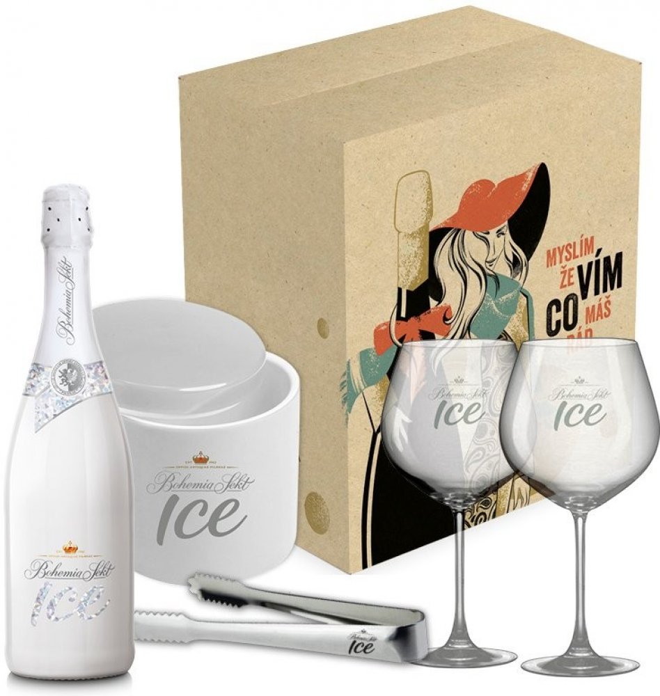 Tento dárkový set je ideálním dárkem pro zvláštní příležitosti nebo pro vlastní potěšení. Dopřejte si luxusní zážitek s Bohemia Sekt ICE a užijte si každý okamžik s tímto výjimečným setem. Součástí setu je Bohemia Sekt ICE - speciálně navržený sekt, který je ideální pro podávání s ledem. Jeho jemné perlení a osvěžující chuť jsou perfektním společníkem pro horké letní večery nebo pro jakoukoli oslavu. Dále set obsahuje originální skleničky, praktické kleštičky, které usnadňují manipulaci s ledem. Díky nim jednoduše a elegantně přidáte led do skleničky, aniž byste se museli obávat rozlití nebo nepořádku. A stylovou a funkční nádobu, ze které budete led servírovat. Udrží váš led déle chladný a je zároveň elegantním doplňkem na každém stole.Každá lahev v balíčku má obsah 0,75l ℮.