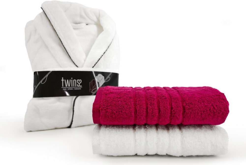 Prémiový vánoční set pro ženy. Set obsahuje luxusní župan TWINS v bílé barvě se šálovým límcem a výraznou textilní légou ohraničující okraj límce a rukávů. Vnější stranu tvoří polyesterová mikrovlákna, která vytváří na dotek sametový efekt. Set je doplněn o dva ručníky řady Brilliant v elegantní bílé a berry (rudé) barvě, které jsou vyrobené ze 100 % bavlny.