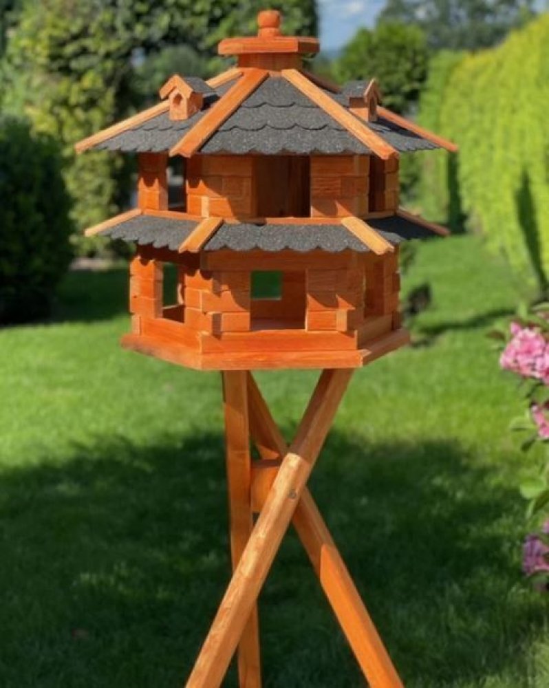 Ptačí budka vila velikost XXL Artikel: VV-XXL-500600 Material: Smrkové dřevo, asfaltové šindele Průměr střecha: 600 mmPrůměr spodní: 600 mmVýška: 600 mmBarva dřeva: hnědo-oranžováBarva střechy: červená, modrá, zelená, černá