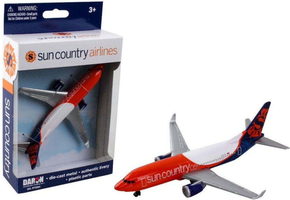 Kvalitní hračka dopravního letadla Boeing 737 v barvách letecké společnosti Sun Country je dokonalým dárkem pro všechny malé nadšence do letectví.