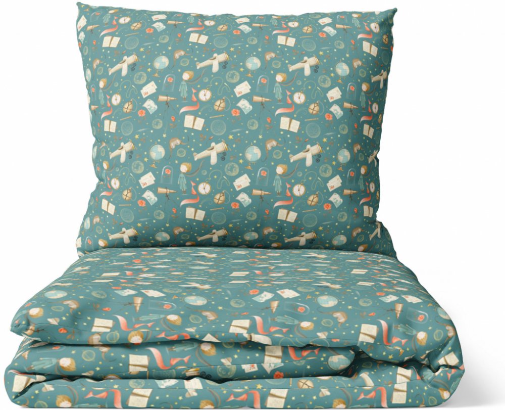 Ušito v České republicePředstavujeme vám povlečení se vzorem Malého prince. Najdete zde motivy malého prince, letadla, globusu, hodin, dalekohledu a mnoho dalšího. Tyto prvky jsou inspirovány slavným příběhem Malý princ od Antoine de Saint-Exupéryho. Bavlněné ložní povlečení je ušito našimi šikovnými švadlenkami z vysoce kvalitní a jemné 100% bavlny o gramáži 120 g/m2.