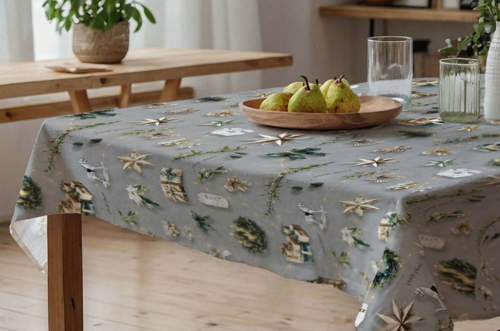 Kolekce Kouzlo VánocTento vánoční ubrus v šedém odstínu přinese do vašeho domova kouzelnou atmosféru svátků. Jeho povrch zdobí vánoční motivy, jako jsou svíčky, dárky, věnce, hvězdy a další symboly Vánoc, vše doplněné jemnými světelnými efekty. Tento dekorativní prvek nejen krásně ozdobí váš stůl, ale také navodí pocit klidu a pohody během svátečních dnů. Ideální pro vánoční oslavy a rodinná setká...