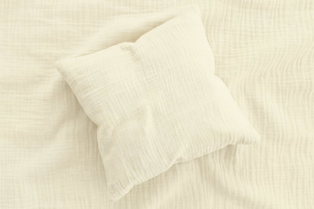 Jedna věc, která mušelín dělá mušelínem: přirozené zvrásnění po praní. Povlaky získají svůj typický vzhled samy – bez žehlení, bez práce navíc. Struktura je záměrná a je součástí krásy materiálu. Stejně tak se mohou místy objevit zesílené nitě – nejde o vadu, ale o přirozenou vlastnost mušelínu a důkaz jeho autentického charakteru.