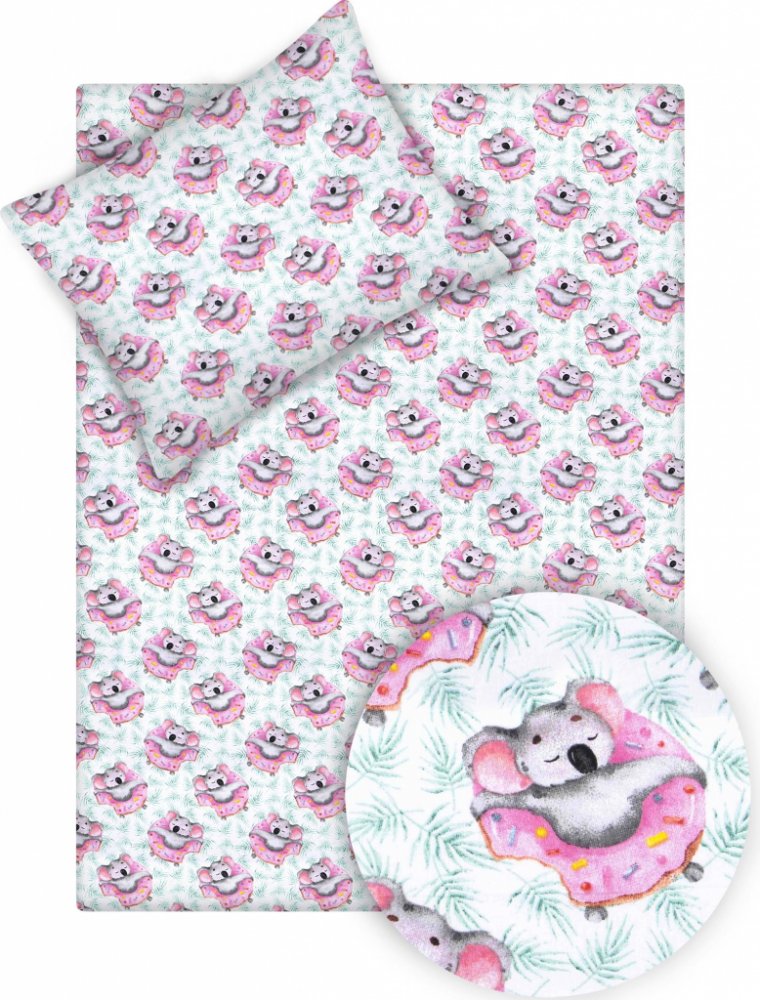 Ušito v České republicePovlečení do postýlky se vzorem Koaly přináší do dětského pokoje nádech australského klidu a pohody. Překrásný a hravý motiv koaly na donutu je jako stvořený pro milovníky zvířat a pro všechny, kteří hledají kousek rozkošné a neformální elegance.Bavlněné ložní povlečení je ušito našimi šikovnými švadlenkami z vysoce kvalitní a jemné 100% bavlny o gramáži 125 g/m2.5 let zárukaU našich výrobků garantujeme dlouhou životnost a stálobarevnost, a proto poskytujeme prodlouženou 5letou záruku. Povlečení je šité s kvalitním zipovým zavíráním - YKK zipy, na které dáváme neomezenou záruku. Doporučujeme prát po rubu se zapnutým zipem pro šetrné praní.Zakázkové šitíZakázkové ušití atypického rozměru povlečení, a to 220 x 200 cm, 200 x 200 cm. Nemáme sice takovou šíři látky, ale máme velmi šikovné a pečlivé švadlenky, které ušijí požadovaný rozměr povlečení tak precizně, aby šev uprostřed povlečení nebyl prakticky vidět a nekazil tak celkový dojem. Dodání cca do 5 pracovních dnů.