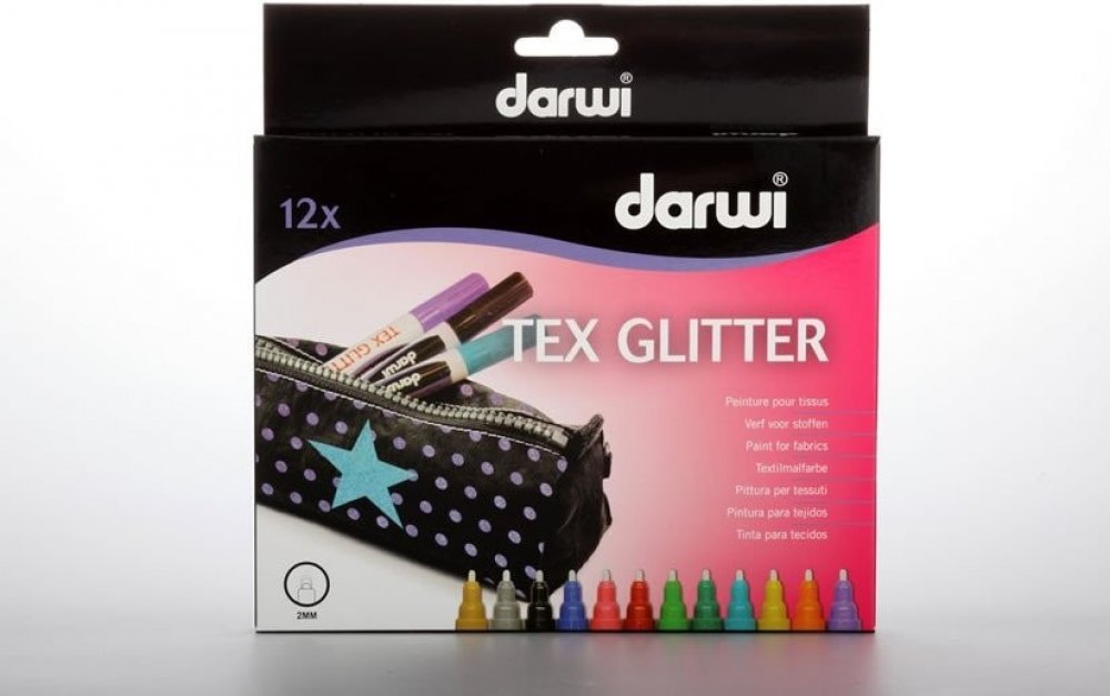 Darwi Tex Glitter fixy na textil sada 12 x 6 ml