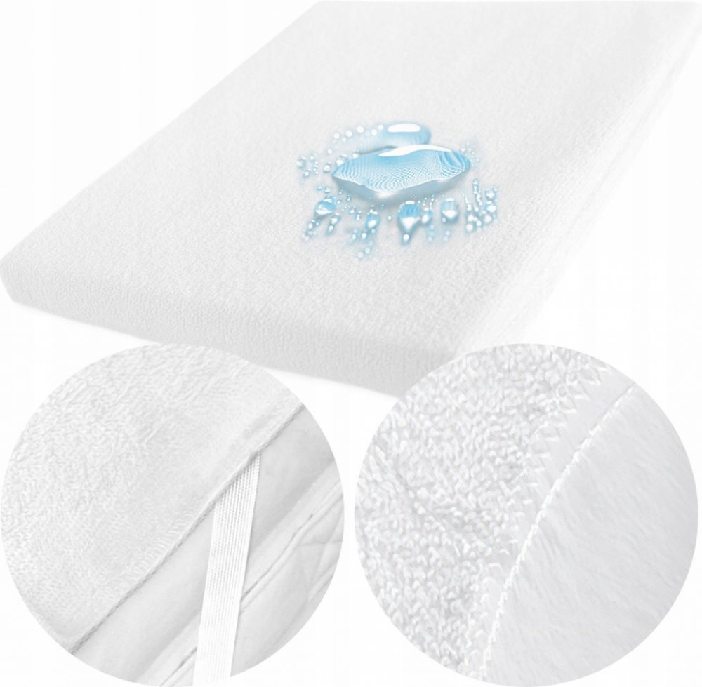 Ochranná plachta na dětskou postýlku je velmi užitečné zařízení. Chrání matraci před znečištěním, tekutinami nebo poškozením. Tento výrobek je bezpečný pro děti. Svrchní materiál je vyroben z bílého ručníku (67 % bavlna a 33 % polyester). Spodní strana je vyrobena z nepromokavé polyesterovéPolyuretantkaniny. Hmotnost ochranné fólie je 130 g/m2. Tato ochrana je polský výrobek a . Je příjemná na dotek, a proto ji lze bez problémů používat v dětských pokojích. Její nespornou výhodou je skutečnost, že je nepromokavá a po vyprání rychle schne. Ochranné prostěradlo z této kolekce má čtyři elastické pásky - v každém rohu. Díky tomu se snadno připevňuje a dokonale se přizpůsobí matraci. Výrobek lze prát na 90 stupňů.