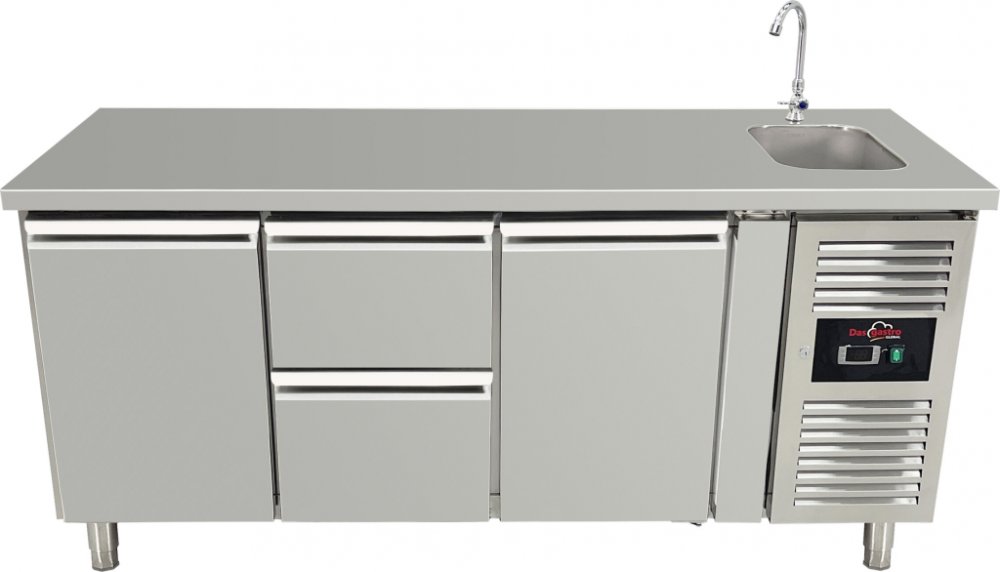 Profesionální chladicí pult DAS3100TNSTRE kombinuje efektivní chlazení a praktický nerezový dřez v jednom těle. Skvělá volba pro provozy s omezeným prostorem, kde je potřeba mít pracovní plochu, chlazený úložný prostor a dřez přímo po ruce.