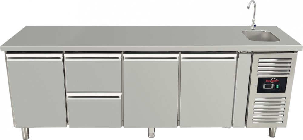 Model DAS4100TNSTRE je kombinací výkonného chladicího zařízení a praktického dřezu. Vhodný pro provozy, které potřebují dostatek místa pro uskladnění chlazených potravin a zároveň mycí zónu integrovanou do jednoho funkčního celku.