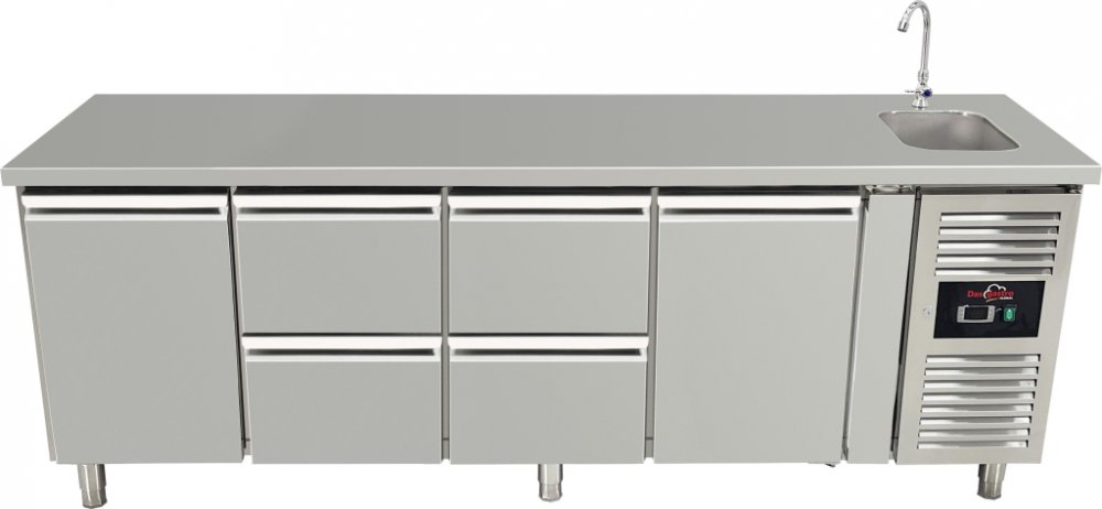 Model DAS4100TNSTRE je kombinací výkonného chladicího zařízení a praktického dřezu. Vhodný pro provozy, které potřebují dostatek místa pro uskladnění chlazených potravin a zároveň mycí zónu integrovanou do jednoho funkčního celku.