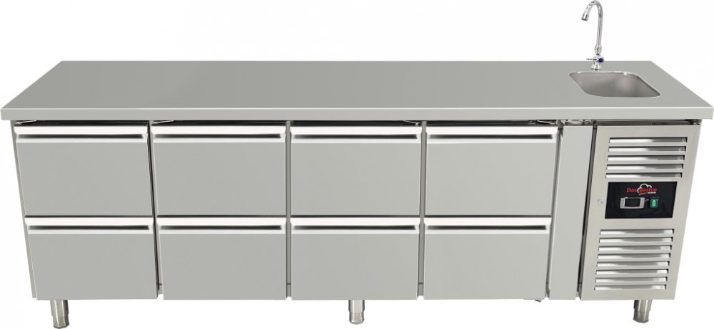 Model DAS4100TNSTRE je kombinací výkonného chladicího zařízení a praktického dřezu. Vhodný pro provozy, které potřebují dostatek místa pro uskladnění chlazených potravin a zároveň mycí zónu integrovanou do jednoho funkčního celku.