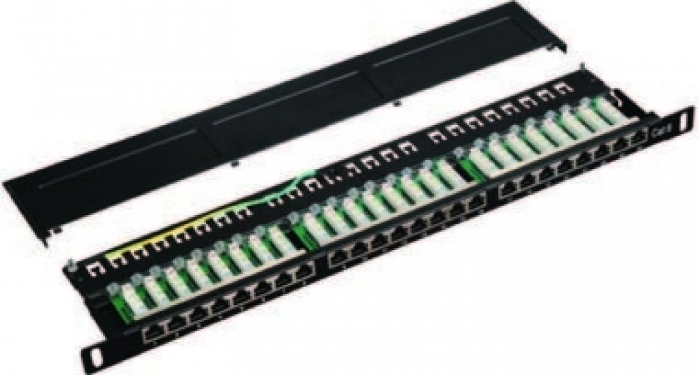 DATACOM Patch panel 19" STP 24 port CAT6 LSA 0.5U BK (3x8p) Popis produktu: * 19" Patch panel stíněný určený pro montáž do 19" datových rozvaděčů. * 3 x 8 pozic zářezového pole typu LSA (krone) * CAT.6 * výška 0.5U (2,225 cm) * hloubka 212mm * horní zářez * barva černá