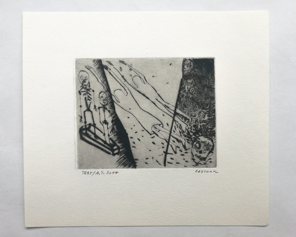 Grafický list - suchá jehla ze souboru ilustrací k básni Svatební košile od Karla Jaromíra Erbena, /bibliofilské vydání básně obsahuje původně 6 grafických listů . Jedná se o autorský tisk z roku 2017, 17x20 cm