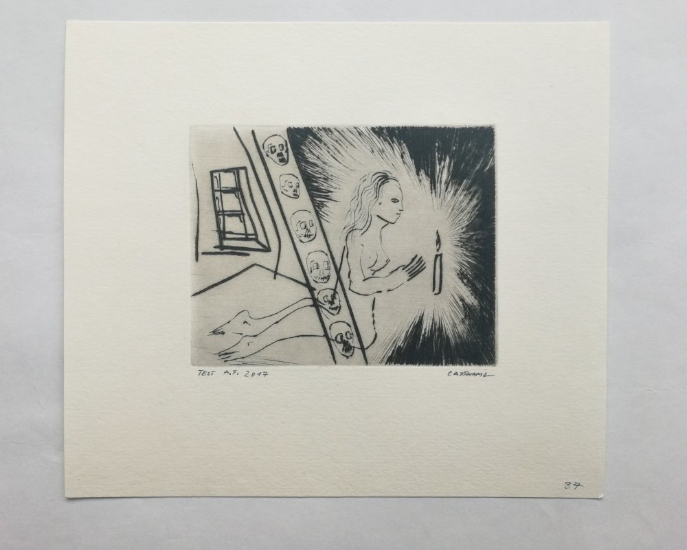 Grafický list - suchá jehla ze souboru ilustrací k básni Svatební košile od Karla Jaromíra Erbena, /bibliofilské vydání básně obsahuje původně 6 grafických listů . Jedná se o autorský tisk z roku 2017, 17x20 cm