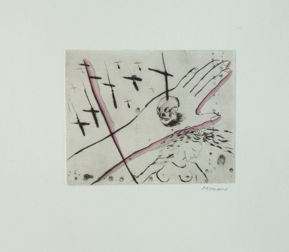 Grafický list - suchá jehla ze souboru ilustrací k básni Svatební košile od Karla Jaromíra Erbena, /bibliofilské vydání básně obsahuje původně 6 grafických listů . Jedná se o autorský tisk z roku 2017, 17x20 cm