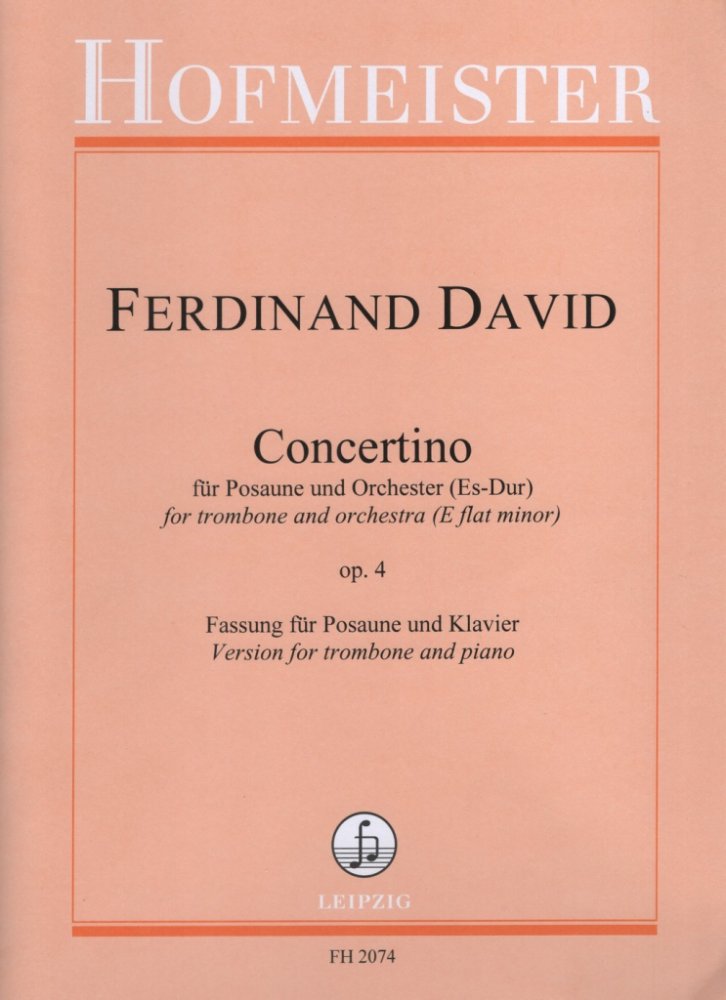 Concertino Es-Dur, op.4 pro pozoun (trombon) a orchestr je nejznámější dílo skladatele Ferdinanda Davida. Nyní Vám tuto skladbu přinášíme v úpravě pro pozoun a klavír.