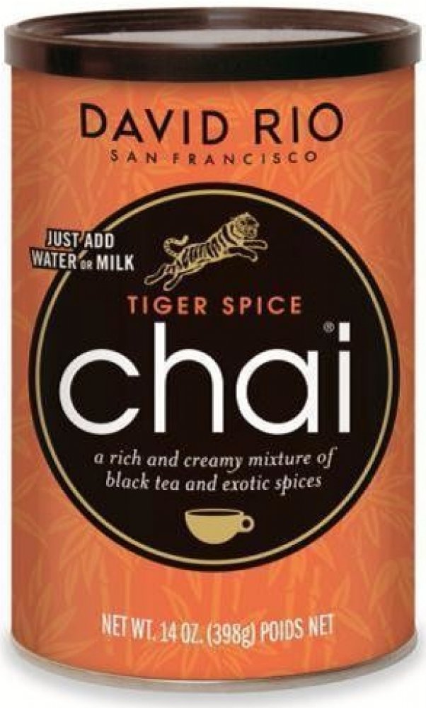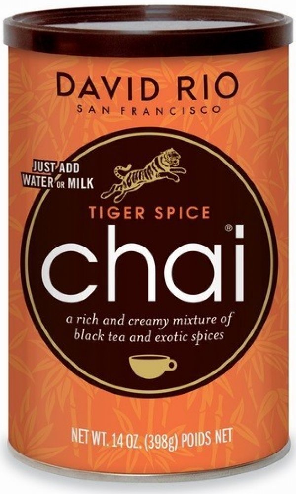 David Rio Tiger Spice Chai představuje lahodný čaj pro každou příležitost. Tento tradiční indický nápoj vám umožní prožít nevšední chuť a vůni kombinace drceného černého čaje, mléka, skořice, hřebíčku a kardamonu z pohodlí vašeho domova, bez nutnosti cestovat až do Indie.