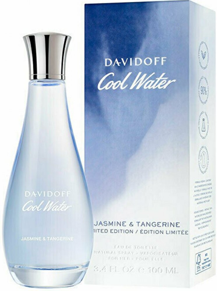 Davidoff 100 ml dámské toaletní vody jasmínové pro denní nošení s celodenní výdrží (4-8h) svěží a energické Cool Water mainstreamové testery TSA kompatibilní (≤100ml) rozprašovač standardní se střední projekcí letní kompatibilní s jasmínem, s mandarinkou