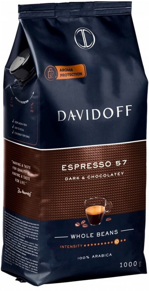 Davidoff Espresso 57 Dark & Chocolatey, zrnková káva, 100% Arabica, 1 kgEspresso 57 je tmavě pražená, intenzivní káva, která nabízí výraznou chuť pravého espressa s jemným aroma a lehkými čokoládovými tóny. Vybraná zrna 100% Arabicy z Latinské Ameriky jsou pražena samostatně v bubnových pražičích při ideálně vyváženém poměru času a teploty, a následně pečlivě míchána pro dosažení dokonale harmonic...