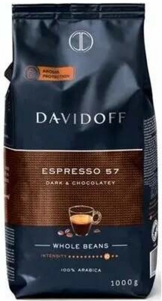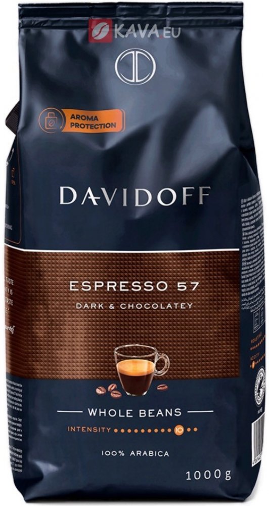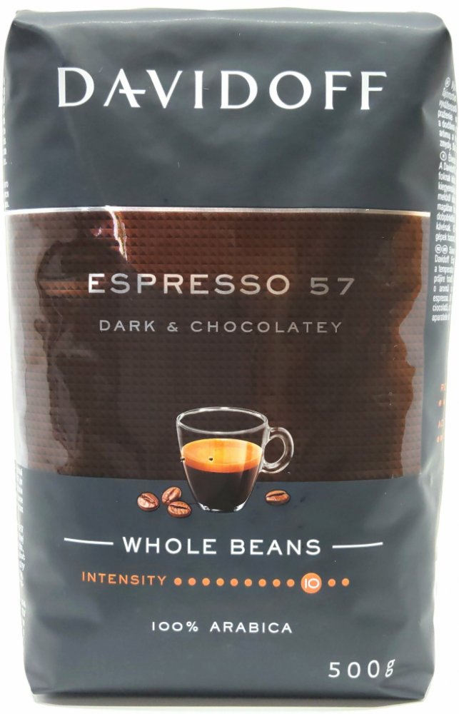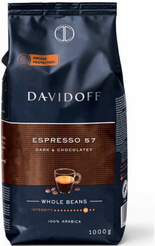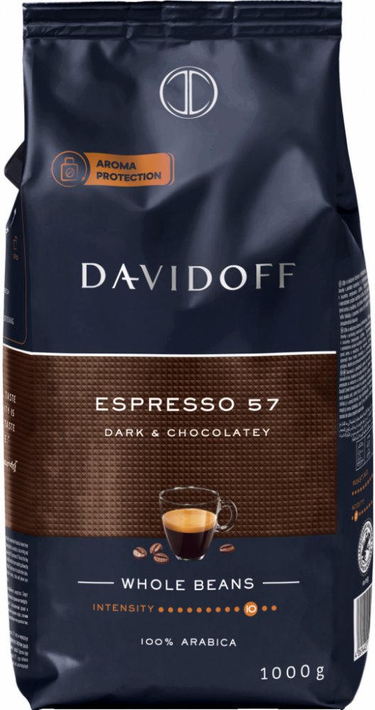 Davidoff Café Espresso 57 je zrnková káva pražená při speciálním stupni pražení 57, který je vyváženým spojením doby pražení a dokonalé teploty. To umožňuje, aby se v prvotřídních zrncích rozvinulo příjemné aroma s lehce čokoládovou příchutí. Tmavé, intenzivní pražení překvapí typickou chutí kávy espreso.,