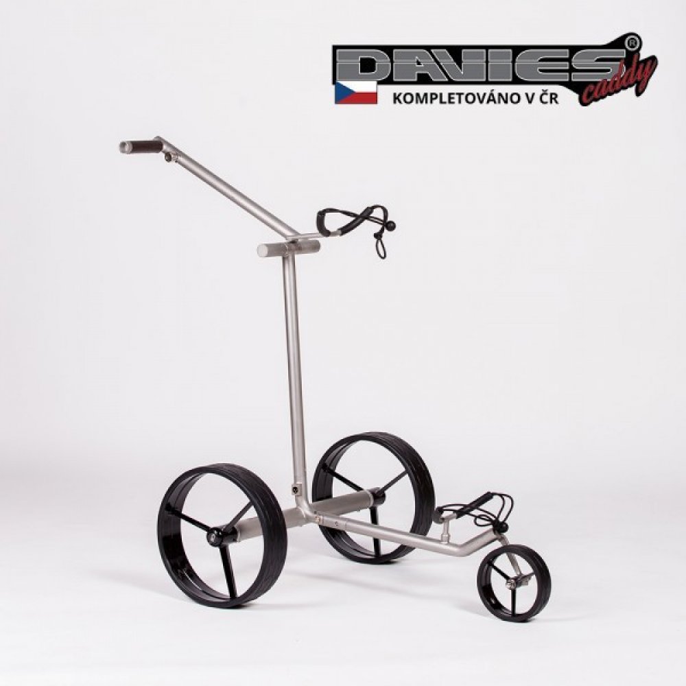 Davies Caddy PREMIUM TRAVELTRAVEL - Minimální rozměry v rozloženém stavu. Minimum potřebného místa v zavazadlovém prostoru auta. Novinka od České značky DAVIES CADDY, která je vybavena špičkovými komponenty, vyrobenými v Německu, Francii a České republice. • Váha vozíku: 9 Kg • Jednoduchý ergonomický provoz pomocí potenciometru a tlačítka start / stop• Rám vozíku je vyroben z pevné tenkostěnné oceli, která zaručuje přesné a pohodlné ovládání vozíku.• Vozík je vybaven automatickou funkcí DHC (Downhillcontrol) pro plynulou jízdu z kopce + automatickou brzdou• Automatický dojezd 10 a 20 vteřin, Vámi naposledy nastavenou rychlostí před zastavením vozíku• Pohon vozíku zajišťují dva ultra tiché motory 2x 90 W "Made in Germany" • Luxusní kožená rukojeť• Rychlá montáž a demontáž, pomocí rychloupínacích bajonetů, nebo možnost vozík pouze sklopit a odmontovat zadní kola (viz. obrázek)• Přední odpružená osa zaručuje hladký přejezd, přes terénní nerovnosti. Baterie - 12 AH, s výdrží až 36 jamek• Baterie od německých výrobců • Dá se nabít až 1500krát• Baterii je možno vložit do golfového bagu, nebo umístit na specializovaný držák a tím si nezmenšovat vnitřní prostor golfového bagu. https://www.time-for-golf.eu/7219-drzak-na-baterii-brush-silver • Rozměry baterie 20 x 8 x 6,5 cm • Váha 1,2 kg Přepravní možnosti/rozměry Rozměry sklopeného vozíku,• přední část otočená o 90 °, bez zadních kol: 66x65x16cm (délka x šířka x výška)• doba skládání 5 vteřin. Přepravní taška rozložený vozík : https://www.time-for-golf.cz/7203-prepravni-taska-pro-voziky-quick-fold-smart-a-premium Rozměry rozebraného vozíku• 64x32x17cm (délka x šířka x výška)• doba skládání 20 vteřin Přepravní kufr pro rozebraný vozík :https://www.time-for-golf.eu/8115-prepravni-kufr-2021-pro-vozik-premium-s-umistenim-pro-baterii Před nákupem přepravní tašky si prosím vyberte způsob rozložení vozíku. Pro každý typ rozložení / přepravy se používá jiná taška!ZDARMA prodlužovací kabel k baterii v hodnotě 600 Kč K vozíkům Davies Caddy doporučujeme cart bagy Bennington, které mají v zadní části bagu speciálně konstruovanou kapsu pro optimální vložení baterie Davies Caddy, aby Vám baterie nezabírala místo ve Vašem bagu.