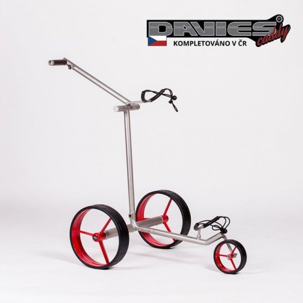 Davies Caddy Premium DHC elektrický vozík, Black matt/červená kola+ baterie na 36 jamek, nabíječka