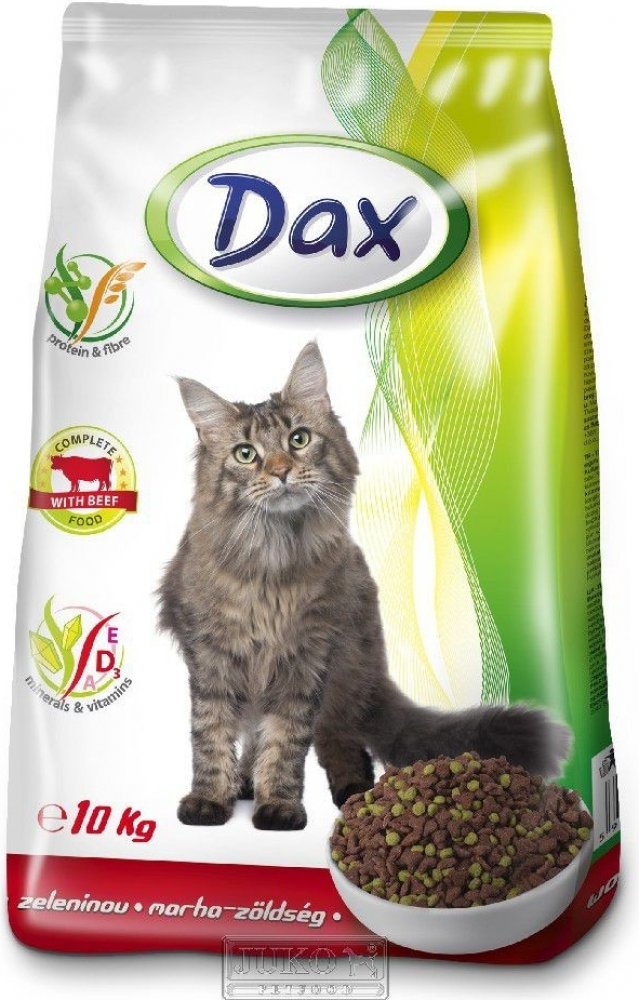 Kompletní a vyvážené krmivo pro dospělé kočky s hovězím.Složení: obiloviny, maso a výrobky živočišného původu (4% hovězí v hnědých granulích), vedlejší výrobky rostlinného původu, oleje a tuky, zelenina (4% v zelených granulích), minerální látky.Analytické složení: bílkoviny 28 %, tuky 9 %, popeloviny 9,5 %, vláknina 3,5 %.Nutriční složení: vitamín A 8000 mj, vitamín D3 800 mj, vitamín E 65 mg, sí...