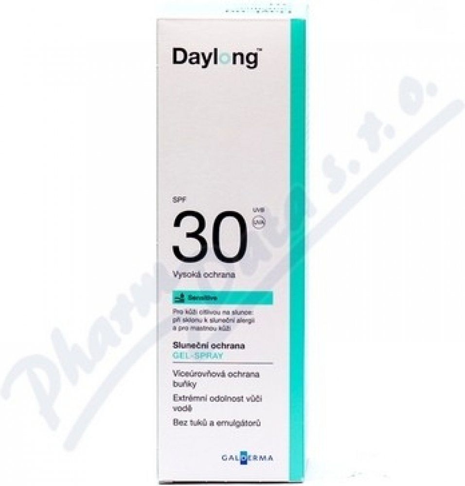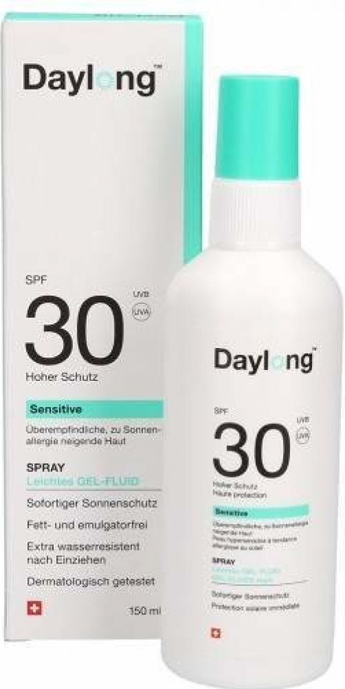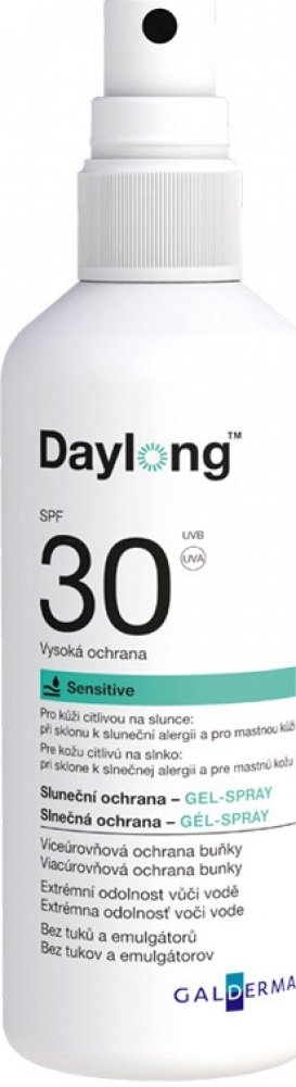 Daylong Sensitive SPF 30 spray gel-fluid je vhodný pro kůži velmi citlivou na slunce nebo mastnou kůži. Gel - fluid se rychle vstřebává a poskytuje zmatňující účinek. Sprej ulehčuje aplikaci na obtížně dosažitelných nebo vlasy pokrytých částech těla. Vhodný pro sportovní aktivity.