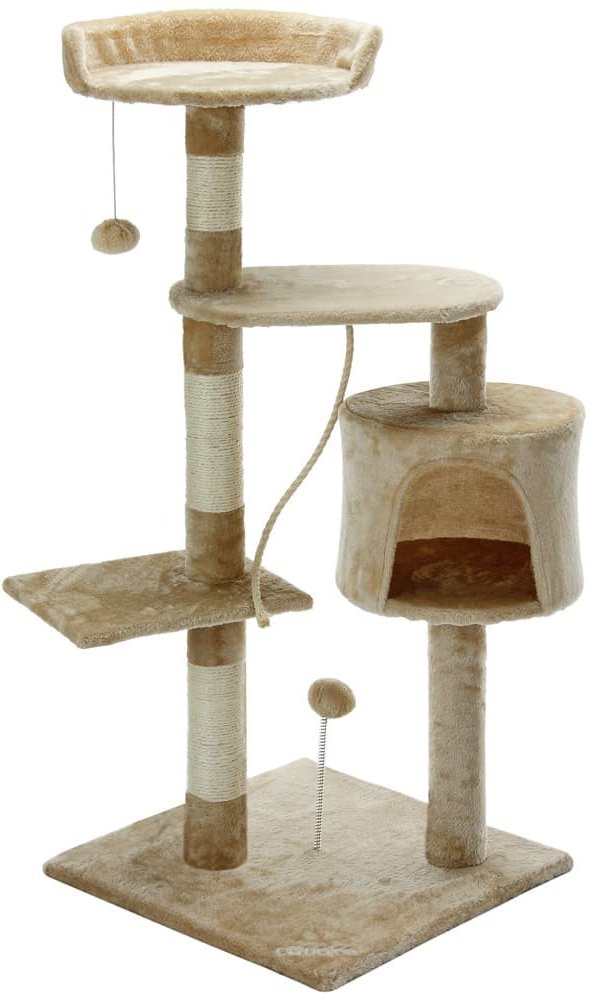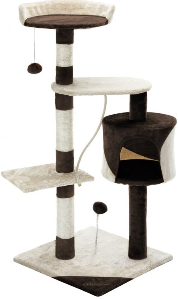 Kočičí škrabadlo na drápání, hraní, schovávání a podřimování! S úkrytem, hracími míčky, hracím lankem a plyšovou podšívkou má vaše kočka vše, co potřebuje, aby se cítila dobře. Sisalový obal na kmenech je robustní a ideální pro broušení drápků. Robustní základní deska zůstává stabilní i při divokých hrátkách.