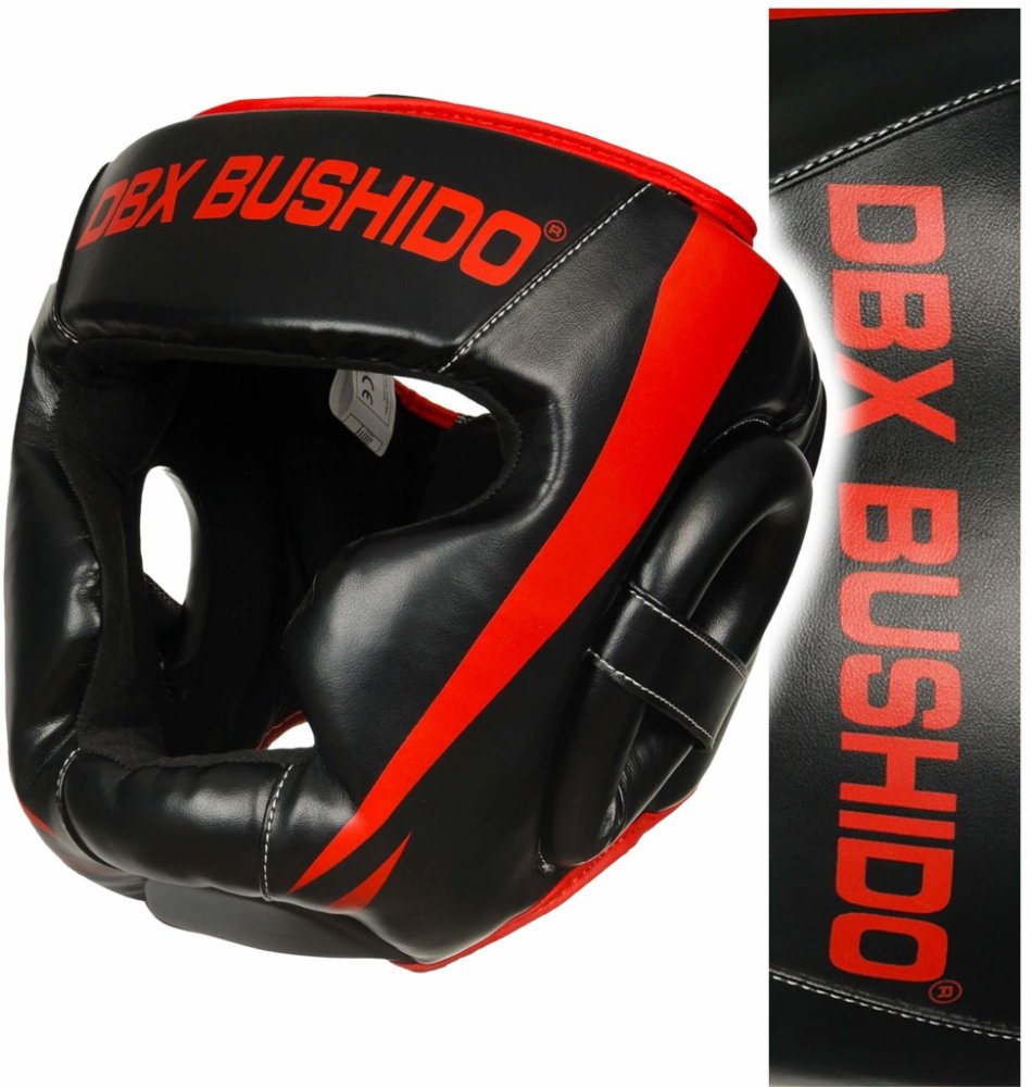 Boxerská helma DBX BUSHIDO ARH-2190R je vyrobena ze zpevněné, umělé kůže a je vyplněna PU pěnou, která dokonale pohlcuje nárazy. Přilba je navržena v souladu s bezpečnostními standardy a zajišťuje tak bezpečnost a komfort během zápasu, tréninku či nácviku se sparing partnerem. Tvar helmy je navržen tak, aby byly chráněny lícní kosti, oči, nos a uši. Zpevnění v oblasti čelisti jí poskytuje větší stabilitu a napomáhá předcházet jejím zraněním. Helma je vyrobena z umělé kůže se zvýšenou elasticitou. Uvnitř je vyplněna pěnou vysoké hustoty a povrch je upraven tak, aby nenasával pot. Díky tomu odolává praskání a snadno se udržuje. Ze zadní strany je široký pás se suchým zipem, který zaručuje, že helma bude na hlavě přesně sedět.
