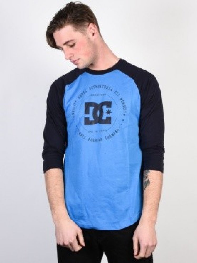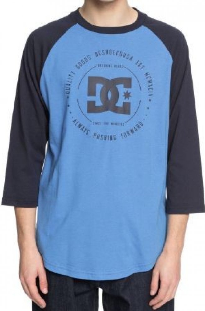 DC Shoes 100 % bavlna s 3/4 rukávem modrá s kulatým výstřihem regular fit