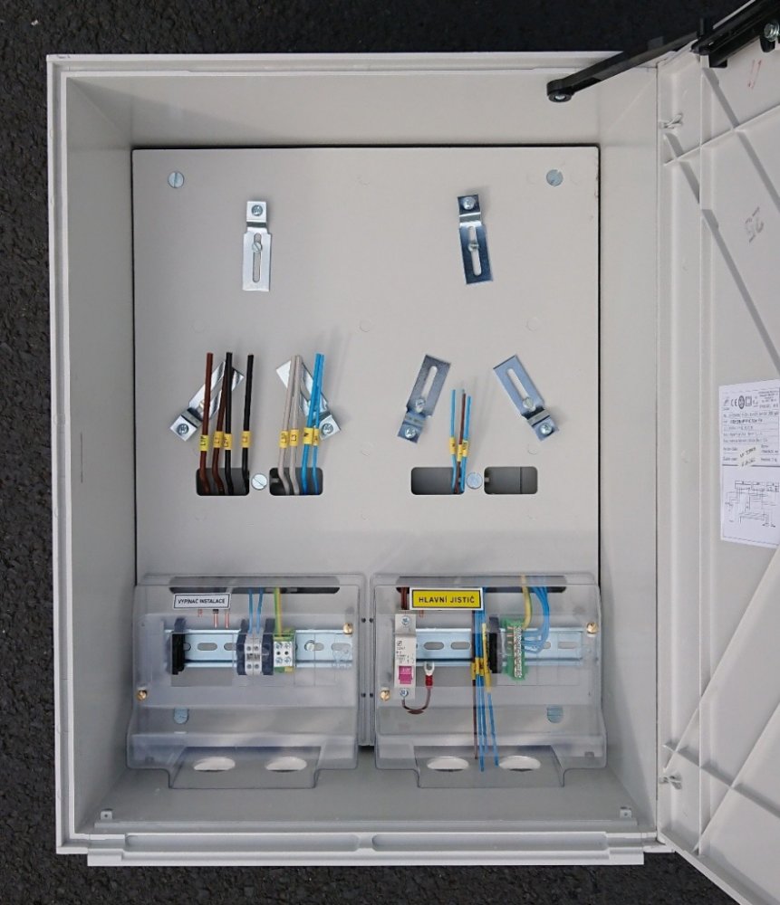 Hlavní jistič není součástí rozvaděče, obsahuje pouze jistič HDO.