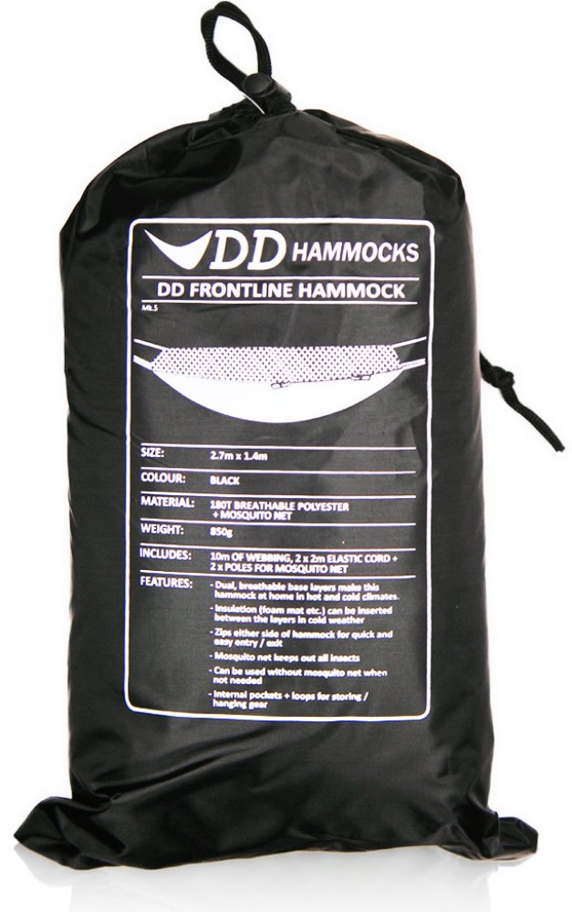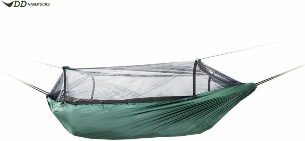 Dvouvrstvá DD Frontline Hammocks - celouzavíratelná, prodyšná hamaka s moskytiérou a s dvojitým dnem pro vložení karimatky nebo zakokonování se. Velmi prostorná a pohodlná hamaka. Hamaku lze postavit na zemi jako stan a má poutka pro uchycení vnějšího zateplení-Underblanket. Uvnitř hamaky čtyři užitečné kapsy na věci. Při uzavření je hamaka prodyšná.