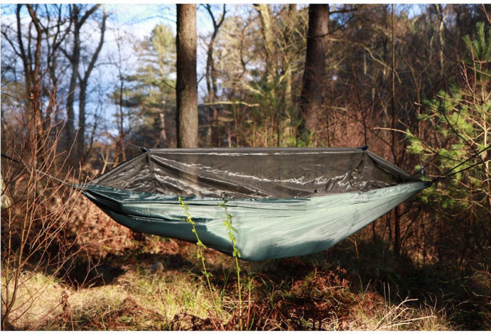 Hamaky Travel, Frontline a Jungle jsou na toto připravené a můžete je využít jako bivak a spát v nich na zemi. Mají dvojité, nepromokavé dno střih a úchyty k vytvoření stanu. S pomocí dodávaných lanek a klacku/ ńebo trekových holí postavíte místo hamaky stan.