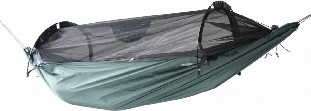 Hamaka Jungle SuperLight, DD Hammocks, oliva zelená od DD Hammocks. Velikost: 2,7m x 1,4m (komfortní pro lidi do 197 cm a 125 kg) Sbalený rozměr nestlačený:40x14cm Bava: Oliva Zelená Váha: 1520g Materiál: Nylon Oxford s PU zátěrem Balení obsahuje: 2x karabina Superlight, 2x duralová tyčka, Whoopie slings-speciální rychlý uvazovací systém pro hamaku, 2x stromový úvaz Tree Huggers, 2x elastické lanko, 1x 3m šňůra Hlavní součásti hamaky: 1) Hamaka samotná s dvojitým, prodyšným pláštěm pro vložení karimatky(neboli spodní plášť), jehož součástí je extra rychlý a pohodlný uvazovací systém, tzv.