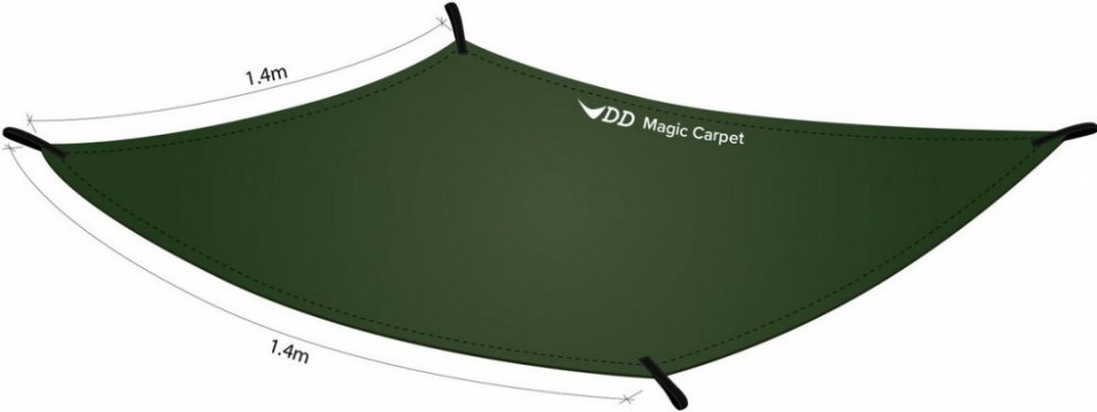 Voděodolná podlážka DD Hammocks Magic Carpet od DD Hammocks. Velikost: 140x140 cm Barva: oliva zelená Hmotnost: 174 g Obah balení: podlážky, balící pytlík -100 % nepromokavá, jako všechny DD Hammocks plachty -čtyři rohové upevňovací body -podlepené švy Voděodolná podlážka, nouzová plachta.