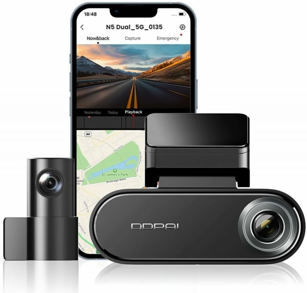DDPAI N5 Dual je unikátní kombinací moderní technologie a funkčnosti. Zařízení nabízí možnost záznamu v rozlišení 4K UHD na přední straně a 1080P na zadní straně, což zaručuje křišťálově čistý obraz z obou perspektiv. Se dvěma kamerami, přední a zadní, poskytuje DVR úplný a detailní pohled na dopravní situaci, což je klíčové pro bezpečnost a možnou analýzu dopravních událostí.