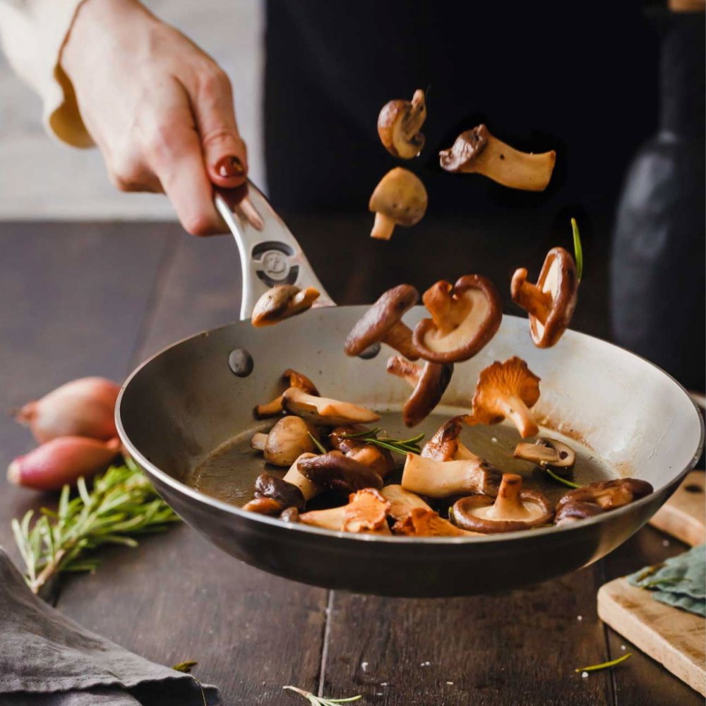 Vlastnosti:- univerzální pánev Mineral B PRO s povrchovou úpravou včelím voskem a nerezovou rukojetí.- průměr 28 cm- váha: 2,17 kg- rukojeť z nerezu, ergonomická ve francouzském stylu- materiál: ocel (tloušťka 2,5-3 mm), 100% přírodní materiál, který je ekologický a recyklovatelný- pánev s profilem Lyonnaise (jídlo snadno sklouzne na talíř), ideální pro opékání, grilování, opékání- vhodná pro venk...